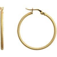 Welcome to Jewelco London and thank you for visiting! Jewelco London Ladies 9ct Yellow Gold Ribbed Coiled Twist 1.5mm Hoop Earrings 28mm. Fitted with classic snap down post for easy click-on.