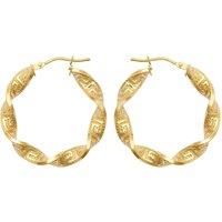 Welcome to Jewelco London and thank you for visiting! Jewelco London Ladies 9ct Yellow Gold Greek Key Ribbon Twist 4mm Hoop Earrings 27mm. Fitted with classic snap down post for easy click-on.