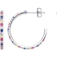 Welcome to Jewelco London and thank you for visiting! Jewelco London presents this piece from it's latest collection of jewellery, a pair of ladies hoop earrings made of rhodium plated sterling silver in a 3/4 circle of life coral rainbow design, set with gemstone. Approx dimensions: 24mm -