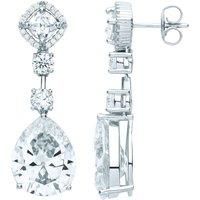 Welcome to Jewelco London and thank you for visiting! Jewelco London presents this piece from its latest collection of jewellery, a pair of ladies drop earrings made of rhodium plated sterling silver in a heavy raindrop halo design, set with white pear cubic zirconia, white cushion cubic zirconia and white round cubic zirconia gemstones. Fitted with post and butterfly fittings for security Approx dimensions: