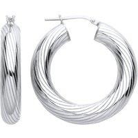 Welcome to Jewelco London and thank you for visiting! Jewelco London presents this piece from it's latest collection of jewellery, a pair of ladies hoop earrings made of rhodium plated sterling silver in a barked hurricane twist design# #. Fitted with classic snap down post for easy click-on.Approx dimensions: