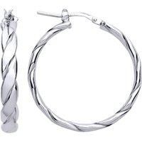 Welcome to Jewelco London and thank you for visiting! Jewelco London presents this piece from it's latest collection of jewellery, a pair of ladies hoop earrings made of rhodium plated sterling silver in a plaited chunky twist design, set with gemstone. Approx dimensions: 28mm - 4mm -
