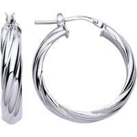Welcome to Jewelco London and thank you for visiting! Jewelco London presents this piece from it's latest collection of jewellery, a pair of ladies hoop earrings made of rhodium plated sterling silver in a d-shape chunky twist design, set with gemstone. Approx dimensions: 25mm - 5mm -