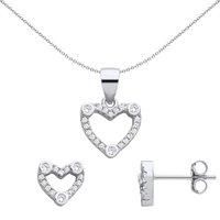 Welcome to Jewelco London and thank you for visiting! Jewelco London presents this piece from it's latest collection of jewellery, a ladies earrings necklace set made of sterling silver in a love heart halo trilogy design, set with gemstone. Includes a complimentary Rhodium-Plated Sterling Silver chain, which can be adjusted to 16, 18 or 20 inches. - Manufacturers part number: GSET657