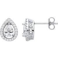 Welcome to Jewelco London and thank you for visiting! Jewelco London presents this piece from its latest collection of jewellery, a pair of ladies stud earrings made of rhodium plated sterling silver in a kisses gallery teardrop solitaire halo design, set with white pear cubic zirconia & white round cubic zirconia gemstones. Fitted with post and butterfly fittings for security Approx dimensions: | Jewelco London Women's Silver Pear CZ Kisses Gallery Teardrop Halo Stud Earrings - GVE989 in White