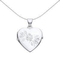 Welcome to Jewelco London and thank you for visiting! Jewelco London presents this piece from it's latest collection of jewellery, a ladies locket pendant necklace made of rhodium plated sterling silver in a flower leaves engraved love heart design# #. Approx dimensions: Includes a complimentary Rhodium-Plated Sterling Silver chain, which can be adjusted to 16, 18 or 20 inches. This product can be engraved, please contact us for more info.