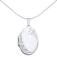 Welcome to Jewelco London and thank you for visiting! Jewelco London presents this piece from its latest collection of jewellery, a ladies locket pendant necklace made of rhodium plated sterling silver in a engraved floral filigree oval design# #. Approx dimensions: Includes a Rhodium-Plated Sterling Silver chain, which can be adjusted to 16, 18 or 20 inches. This product can be engraved, please contact us for more info.