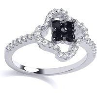 Welcome to Jewelco London and thank you for visiting! Jewelco London presents this piece from its latest collection of jewellery, a ladies cocktail ring made of rhodium plated sterling silver in a shoulder set 4 leaf clover design, set with black round cubic zirconia & white round cubic zirconia gemstones. Approx dimensions: