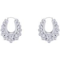 Welcome to Jewelco London and thank you for visiting! These earrings showcase an oval form with an openwork pattern, offering a refined and delicate aesthetic. A style essential these classic chic 925 sterling silver creole earrings are crafted with delicate detailing. Perfect for daily wear. | Jewelco London Women's Sterling Silver Oval Pear Spikey Bead Creole Earrings 24mm - AER178A in White