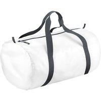 Combined stow pouch/internal pocket. Webbing carry handles. Ultra lightweight yet durable. Water resistant fabric. Fabric 210D Polyester. Weight 150g. Capacity 32 litres. Approx Dimensions 50x30x26cm. Embroidery 18 Tubular hoop. Approx print area. Sides 18x20cm. Ends 20x18cm. Stow pouch 18x11cm. - Manufacturers part number: Bagbase_UTRW2577_white_MP-7813