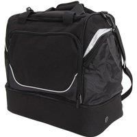 Designed to fit most lockers. Dual compartment design. Structured, ventilated base compartment. Front pocket designed for easy decoration. Zippered end pockets. Internal valuables pocket. Internal mesh pockets. Detachable adjustable shoulder strap with pad. Padded hand grip. Protective base feet. Dimensions: 44 x 39 x 27cm. Capacity: 40 litres. Maximum embroidery: front pocket 15 tubular hoop, end pockets 9 tubular hoop. Maximum print area: front pocket 24 x 14cm, end pockets 9 x 9cm tubular hoop. Weigh... - Manufacturers part number: Quadra_UTBC3249_blacklightgrey_MP-7813