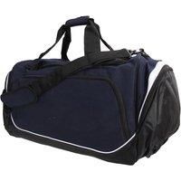 Front pocket designed for easy decoration. Large main compartment. Two large end pockets. Internal valuables pocket. Internal mesh pockets. Water bottle holder. Detachable adjustable shoulder strap with pad. Padded hand grip. Internal baseboard. Protective base feet. Dimensions: 85 x 38 x 35cm. Capacity: 115 litres. Maximum embroidery: front pocket 18 tubular hoop, end pockets 15 tubular hoop. Maximum print area: front pocket 44 x 20cm, end pockets 17 x 15cm. Weight: Product: 1800g approx. 600D/ 420D Po... - Manufacturers part numbers: UTBC3250_2|Quadra_UTBC3250_frenchnavyblackwhite_MP-7813