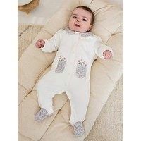 JoJo Maman Bebe Baby Girls Floral Embroidered Collar Sleepsuit Size & Fit Available in ages: Newborn to 12-18 months Details Baby Girls Floral Embroidered Collar Sleepsuit by JoJo Maman Bebe Cream Cream long-sleeved footed sleepsuit Dainty flower embroidery above 2 front pockets Rounded collar Super soft touch Poppers at the crotch for easy changing Floral print to the neck, pockets and feet Fold-over scratch cuffs up to size 9-12 months Sizes 9-12 months and up feature anti-slip dots on feet KEEP AWAY ...