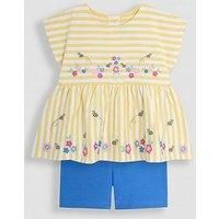JoJo Maman Bebe Girls 2-piece Duck Embroidered T-shirt & Shorts Set - Yellow Material Content: MAIN: 100% Cotton SHORT: 90% Cotton, 10% Elastane