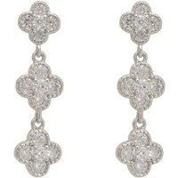 The Mini Triple Clover Drop Earrings in silver combine classic style with a touch of playful sparkle. Made from 925 sterling silver, each earring features three tiny clovers linked in a graceful drop that moves softly as you do. Every petal glistens with clear cubic zirconia, creating a radiant finish that catches the light with subtle sophistication. With a length of 2.3cm and width of 0.6cm, and a total weight of 2.1 grams, theyre perfectly balanced for comfort and shine. Symbolising luck and happines...