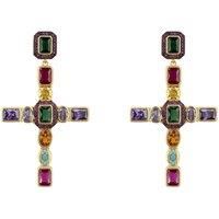 Introducing the Santa Maria Extra Large Gemstone Fashion Earrings in Gold - a bold and beautiful statement piece that marries timeless elegance with a splash of vibrant colour. Crafted from high-quality 925 sterling silver and luxuriously dipped in 18ct gold, these earrings are designed to dazzle and delight. Adorned with vibrant lab-grown gemstones including turquoise, amethyst, ruby, quartz, and emerald. The colourful gems intricately cover the crosses, making each piece a vivid masterpiece.Measuring ...