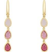 Introducing the Sardinia Triple Teardrop Earrings Gold - The Pinks, a masterpiece that celebrates the delicate hues of romance. Crafted with precision from premium 925 sterling silver and adorned with a sumptuous 18ct gold overlay, these earrings are the epitome of elegance. Weighing a mere 2.25 grams and measuring a graceful 4cm in length, they are designed for both beauty and comfort.Each earring showcases a trio of lab-created teardrop gemstones, thoughtfully selected to include the soft allure of Ro...