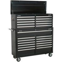 • Extra-wide tool chests designed to take our modular tool trays.• Topchest lid fitted with gas dampers for smooth opening and closing.• All heavy gauged steel construction and manufactured with steel inner walls for extra strength and durability.• Heavy-duty 45mm ball-bearing drawer slides provide superior performance and carry heavier loads.• Full height rear locking mechanism, locks full-length drawers in multiple locations.• Added security provided by cylinder locks. Supplied with two keys.• Rust and solvent resistant powder coat paint finish.• Each drawer features stylish aluminium drawer pulls and non-slip liners.• Fitted with four extra-heavy-duty ø125mm PU/PP alloy wheels, two castors with large toe locks and two fixed wheels.Package includes:• AP5210TB - Topchest 10 Drawer with Ball-Bearing Slides - Black• AP5213TB - Rollcab 13 Drawer with Ball-Bearing Slides - BlackExtra-wide tool chests designed to take our modular tool trays. Topchest lid fitted w... - Manufacturers part numbers: AP52COMBO2|Sealey_