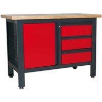 • Heavy-duty powder coated metal frame with a 40mm MDF work surface.• Features three drawers with ball-bearing slides and a single cupboard.• Features adjustable feet to help stability when placed on an uneven surface.• Supplied flat-packed with two keys.• Overall Size (W x D x H): 1200 x 600 x 865mm.Heavy-duty powder coated metal frame with a 40mm MDF work surface. Two configurations available with a combination of lockable drawers and cupboards. Features adjustable feet to help stability when placed on an uneven surface. Supplied flat-packed with two keys.• Heavy-duty powder coated metal frame with a 40mm MDF work surface. • Features three drawers with ball-bearing slides and a single cupboard that features a hanging pegboard on the inside of the door. • Features adjustable feet to help stability when placed on an uneven surface. • Supplied flat-packed with two keys. • Overall Size (W x D x H): 1200 x 600 x 865mm. • Model No. AP1372BTechnical Specification:Nett ... - Manufacturers part number: AP1372B