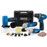 This Draper 12V Brushless Multi-Tool Kit delivers serious versatility in one compact bundle. Designed for trade, maintenance, and serious DIY use, it combines four essential cordless tools powered by a single 12V lithium-ion battery platform. What’s Included 12V Brushless Drill Driver 12V Brushless Angle Grinder / Cut-Off Tool 12V Polisher 12V Oscillating Multi Tool – 33pc Kit 1 × 1.5Ah 12V Li-Ion Battery Fast Charger Heavy-Duty Carry Case Key Features Brushless motor technology for longer runtime, more power, and reduced wear Compact 12V platform – ideal for tight spaces and overhead work Multi-tool capability covers drilling, cutting, grinding, polishing, and sanding Single battery system keeps costs down and workflow simple Draper quality – reliable tools from a trusted UK brand Ideal For Tradespeople needing a lightweight second kit Site m... - Manufacturers part number: Draper_