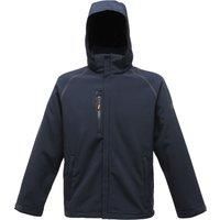 Warm backed softshell fabric. Durable water repellent finish. Mesh lined body. 2 zipped lower pockets and waterproof chest pocket. Detachable hood with adjuster. Articulated sleeve design. Adjustable cuffs. Adjustable shockcord hem. Concealed zip entrance in lining for embroidery access. Weight: 500g/m. Fabric: See features. 96% polyester/4% elastane. | Regatta Professional Men's Repeller X-Pro Softshell Jacket in Navy | Size: 3XL