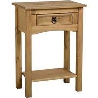 The Seconique Corona 1 Drawer Console Table with Shelf boasts a beautiful distressed waxed pine finish that will bring a whole new look to your home. The attractive design with metal drop handles and the rich colour of the wood make it a superb piece of furniture to look at that is also highly functional. With a spacious drawer, theres plenty of room to store your belongings. Please note, unfortunately we cannot deliver this item to the Channel Islands.[Click here to view the full Corona range](https://... - Manufacturers part number: 30617568