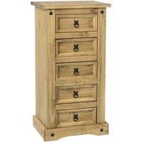 The Seconique Corona 5 Drawer Narrow Chest boasts ample storage for your bedroom. This beautiful distressed waxed pine chest will bring a whole new look to your home. The attractive design with metal drop handles and the rich colour of the wood make it a superb piece of furniture to look at that is also highly functional. With five spacious drawers, theres plenty of room to store your belongings. Installation Note: This product should be fixed to a wall using a wall fastenerPlease note, unfortunately we... - Manufacturers part number: 30617576