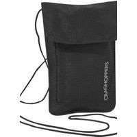 Secure neck pouch from Craghoppers. Designed to be worn around the neck and under clothing for secure storage and easy retrieval of cash, cards and important documents. The lightweight taslan Neck Pouch includes an external zipped pocket in addition to the main compartment and an internal RFID document pocket. Complete with adjustable neck cord. | Craghoppers Men 'Adjustable' Neck Pouch in Black - Manufacturers part number: CER5133