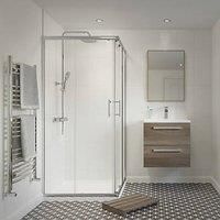 Space saving, corner entry sliding shower enclosure. Aluminium construction with polished silver-effect finish and 6mm clear, toughened safety glass. Features quick-release rollers for easy cleaning. Tray sold seperately. Framed Reversible Sliding Shower Doors 20mm Adjustment 6mm Clear Toughened Safety Glass Quick-Release Rollers for Ease of Cleaning Shower Enclosure W x D x H: 900 x 900 x 1850mm 1 Year Guarantee - Manufacturers part number: 862PJ