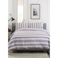 This cozy and elegant bedding set features a modern stripe design in soft hues of red and grey on a crisp white background, perfect for adding a touch of sophistication to any bedroom. Made from high-quality cotton, it ensures comfort and durability, making it ideal for a good night's sleep. The set includes a duvet cover and matching pillowcases, designed to complement a variety of bedroom styles while offering easy maintenance and lasting freshness. Transform your bedroom with this chic and timeless bedding option, exclusive to Debenhams. | The Lyndon Company Extra Warm Magnate Printed Brushed 100% Cotton Duvet set in Red | Size: King - Manufacturers part number: The Lyndon Company_5054990126344