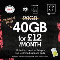 VOXI is the mobile network that gives you unlimited social media. All VOXI plans also come with unlimited calls, texts, MMS and 5G capability as standard. Since VOXI is powered by Vodafone, youll have access to a fast and reliable network to get you online in no time and with no contract, you can cancel anytime. Activate your SIM online to choose your VOXI plan and set up payment (SIM is not preloaded). Unlimited use of social & chat apps as much as you like, without eating your data (UK only). Use our ...