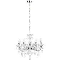 Marie Terese 5-light Chandelier Elaborate and colourful, the Marie Terese chandelier captures the attention even when the lights are turned off. The frame is embellished with acrylic detail and stunning acrylic beads that catch the light and bounce it around your walls and ceiling. Useful info: Marie 5-light Terese chandelier Dimensions: H 82, Diameter 44 cm Ceiling plate diameter 12cm. Required max 40 Watt 5 x E14 SES candle bulbs (not included) Acrylic beads Energy Rating: A++ to E depending on what b...