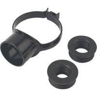 110mm. Easy clip connection to soil pipe. Supplied with 32mm and 40mm push-fit boss adaptors. For use with boss adaptors to accommodate 32, 40 and 50mm waste pipes. uPVC Construction - Manufacturers part number: SP319BL