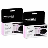 Relive the charm of film photography with the Praktica Disposable Camera, a simple yet reliable choice for capturing life's best moments. Preloaded with 35mm colour film, this easy-to-use camera is perfect for festivals, holidays, weddings, or spontaneous adventures. No charging or maintenance required.Ideal for film lovers, casual photographers, or anyone who wants to experience the magic of analog photography. Simply snap, develop, and relive the memories!Each pack contains:. 2 Disposable Cameras. AAA LR3 Alkaline Battery. 27 Exposure ISO400 FilmKey Features:. Two preloaded disposable cameras with 27-exposure ISO 400 color film. Easy point-and-shoot design. No experience or setup required. Includes AAA battery. Ready to use straight out of the box. Perfect for travel, festivals, and everyday adventures. Lightweight and portable. Classic film aesthetic - Manufacturers part number: _