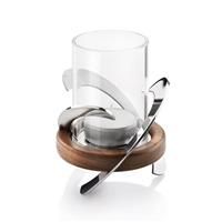 Inspired by helical forms found in nature, this hurricane tea light holder by Robert Welch has three flowing steel arms which gracefully encircle the glass cylinder within. The reflection of candlelight on the metal arms gives an impression of perpetual movement, as the gently bouncing light is reflected onto surrounding surfaces. Includes a lifetime guarantee.