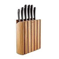 - MULTI AWARD WINNING BRITISH PATENTED DESIGN - The Signature Book Knife Block Set which features 6 essential Signature kitchen knives in a solid oak knife block. The compact, space saving block is designed to fit neatly on the work top against the wall. Knives can be removed from the front or the top of the block, providing easy access. Includes: Carving Knife 23cm, Bread Knife 22cm, Cook's Knife 18cm, Santoku Knife 11cm, Kitchen Knife 14cm, Vegetable/Paring Knife 10cm and a Book Oak Knife Block.