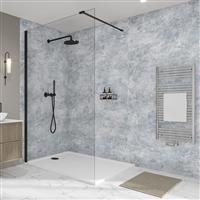 A luxury new look for your bathroom - but without the price tag! With this decorative wall panel from the Wetwall Elite collection, you can achieve a statement look the easy way. It's a hassle-free alternative to tiling that can be fitted in as little as 2.5 hours. The misty grey and white touches in this stone-effect Caliza pattern are guaranteed to transform any bathroom, and its grout-free design makes it so much easier to clean than real tiling. A decorative top sheet is bonded to a wood and plasti...