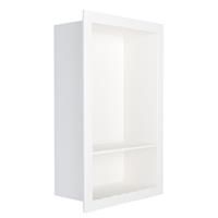 Make the most of unused bathroom space with this recessed shelf. Built into the wall, the edges of this niche shelving appear flush with your Wetwall wall panels - a clever way to create extra storage space for your bathroom or shower enclosure. * Recessed bathroom shelf - space-saving storage solution * Double shelf - outer dimensions of 400(H) x 260(W)mm * Niche - built into the wall with a shelving depth of 99mm * Spacious - ideal for larger bottles with smaller items below * Coordinated look - a flu...