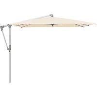 Not for nothing was the previous model top of its category in the Stiftung Warentest consumer quality test. This model is a Glatz hit. Available in round or square shape, the functional Sunwing in natural anodized aluminium is impressive in terms of ergonomics and design. The canopy can be adjusted on both sides with a self-locking crank mechanism in 18 steps up to 90, and the round pole can turn 360 in the base. The cover can be changed and is self-tautening thanks to the flexible rod ends. The support...