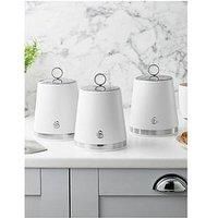 Swan SWKA18536WHT Serenity Set of 3 Kitchen Storage Canisters for Tea, Coffee, and Sugar with Smooth Matt Finish and Stainless Steel Accents, 1.3L, White