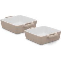 This set of 2 20.5cm square baking dishes are perfect for creating smaller sized dishes and baking delicious cakes. Crafted from strong and robust stoneware, they resist chips, cracks and scratches for long-lasting use in a busy household. The smooth glaze interior allows for easy food release and simple cleaning, whilst the dishes are also dishwasher safe. Safe to use in both the microwave and the oven, they offer great cooking versatility with excellent heat distribution and retention to keep food warmer for longer. Easy grip handles offer comfort when serving from oven to table. | Tower Nattura Set of Two 20.5cm Square Baking Dishes, Made from Strong Stoneware, Smooth Glaze Interior, Easy Grip Handles, Dishwasher Safe, Cashmere - Manufacturers part number: Tower_5055322570989