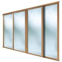Shaker Mirrored Natural oak effect 4 door Sliding Wardrobe Door kit (H)2223mm (W)610mm.This set of mirrored oak effect sliding wardrobe doors is a great solution for helping you to save space not only in your bedroom but inside the wardrobe too.