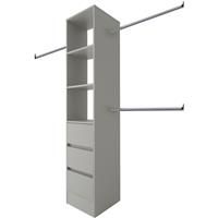 This interior storage tower unit is designed to integrate perfectly with your Spacepro sliding door system. * Interior storage tower unit - helps you organise your wardrobe space Spacepro 3 Drawer 450 Tower (4 Shelves) 1 Hanger Grey Storage (4) in Pebble