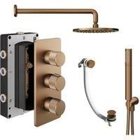 Melbury Pro 3 Outlet Round Mixer Shower features a soft geometric design with sleek diamond-cut knurled textured detail in the valve handle. That provides a contemporary decorative accent for that luxury bathroom feel. This pack come complete with a 3 outlet concealed valve a fixed round shower head wall arm handset & bath waste.The range is available in 5 beautiful finishes.