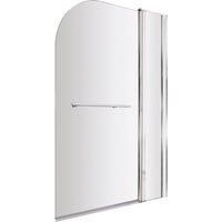 . All about me Clear 6mm tempered glass bath screen with a chrome finish profileA practical and stylish addition to any bathroomFixed panel adds extra coverage for longer bathsIntegrated towel rail for that extra finishing touchFive-year warranty for peace of mind Dimensions . H1435 x W1005 mm (give or take -/+ 3mm per measurement) Weight . 23kg Type . Hinged Adjustment . 985mm - 1005mm Glass Thickness . 6mm Glass type . Toughened safety glass Profile finish . Chrome Handing . Universal Material . Glass...
