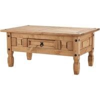 Crafted in a natural colour tone with vintage look, this distressed waxed pine coffee table features black stud detailing and drop handle for the pull out drawer. With the handy storage solution, coffee table is ideal for any living space.[Click here to view the full Corona range](https://www.dunelm.com/category/home-and-furniture/furniture/shop-by-collection/corona-furniture-collection) - Manufacturers part number: 30498663