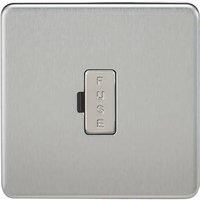 The Knightsbridge SF6000BC Screwless Fused spur unit or fused connection unit in Brushed Chrome is an electrical switch with a built in 13 amp fuse and is designed for appliances that do not have or require a fused plug top. Fused spur units are also used for high powered electrical equipment with heavy continuous loads, so that the appliance can be isolated by a single cable from a ring main for safety and maintenance purposes. The decorative plate features an easy clip on cover with internal gasket for moisture protection and matching screws. It has an ultra slim profile and is made from high quality ultra slim, premium grade material and complete with integral gasket. A light weight and compact unit with measurements Width 87.5mm x Height 87.5mm with a minimum mounting depth of 25mm. Complies to all relevant safety standards and comes with a 15 year manufacturer guarantee. This product is also available in Black Nickel, Matt Black, Polished Brass and Polished Chrom... - Manufacturers part numbers: Knightsbridge_SF6000BC|SF6000BC