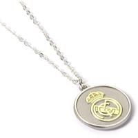 This officially licensed Real Madrid crest necklace features a silver metal pendant with a raised gold-tone crest, measuring 24mm wide. The unisex design comes on a 40cm adjustable silver metal chain for easy adjustment. Add this unique piece to your collection. For ages 14 and up, presented in a branded window box. Officially licensed product. Boxed and ready to give as a gift. Base metal. Metal colour: silver. Chain type: trace chain. Length of chain 45cm/17.72in. Length of drop 40mm. Width of drop 2m... - Manufacturers part number: RMN00004
