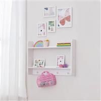 Keep everything organised and within reach with this smart set of wall shelves. Perfect for books, trophies, and teddies, this versatile shelf offers both storage and display space in one. Featuring four handy hanging hooks, its ideal for jackets, bags, medals, or favourite lanyards, making it a practical addition to any room. Made from sturdy MDF and finished with a durable, painted Bright White finish, this shelf blends seamlessly into any decor while offering long-lasting functionality. Made from MDF...