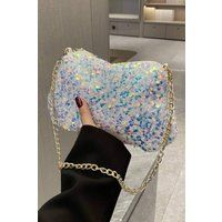 15cm height, 24cm width and 4cm depth | AJVANI Women's Evening Sequin Shoulder Clutch Prom Party Bag in White - Manufacturers part number: AJVANI_5055664828403